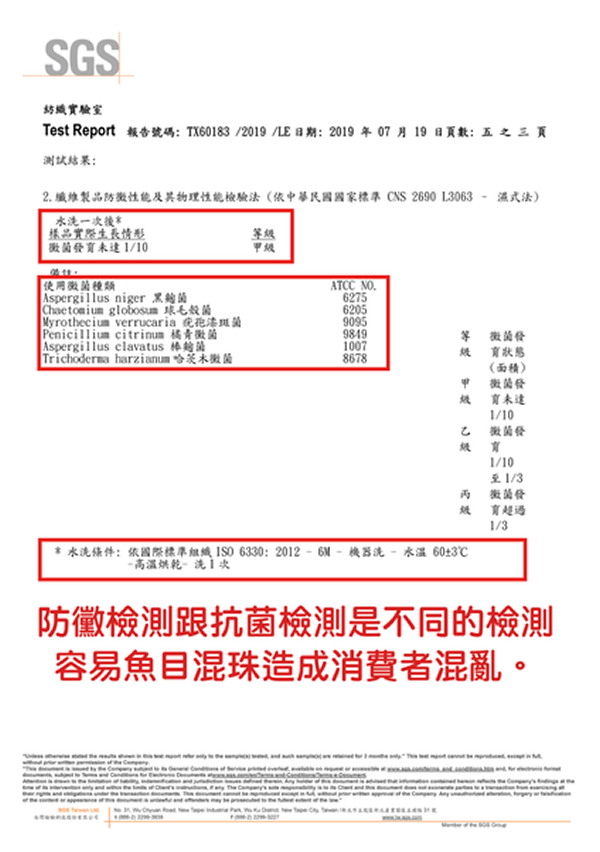 防黴檢測與抗菌檢測不同、需達甲級的防黴檢測才是符合防霉標準。